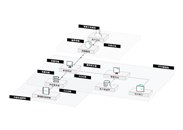 分发层提供产品级高防CDN,优先将视频内容推送至最新节点,比传统CDN提供更优质的安全内容分发缓存,隐藏视频源IP打造视频防盗链机制,充分保障加速播放下的视频内容安全。