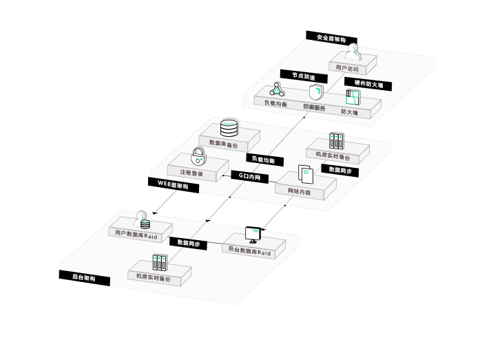 前端服务器默认采用主流配置服务器增加了同步备份,可以根据网站的实际情况做出相应的配置调整,服务器与服务器之间采用负载均衡,在确保整体网络状况稳定的同时节省运算资源,用户流畅访问